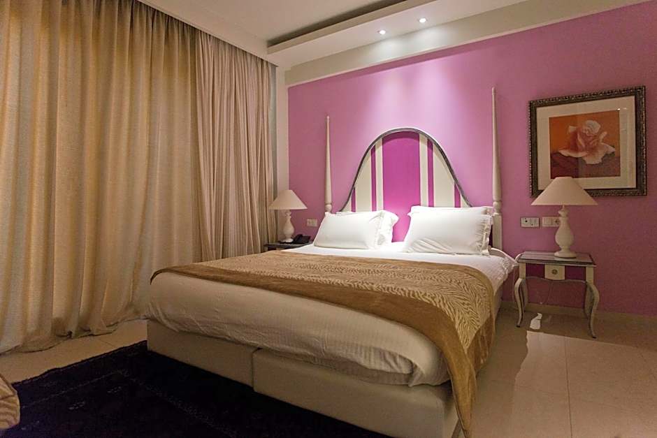 This suite has majestic floor to ceiling windows and sliding doors from the elegant, offering a superb panoramic view of the hotel and the Mediterranean Sea. With beautifully designed table and chairs, several antique furnishings, a huge bathroom with spa bath with sweeping view of the Mediterranean Sea and a separate shower for luxury and comfort. At the extra large balcony you can use the outdoor hot tub with the perfect sea side view. The Executive Mediterranean Suite also features a satellite TV with large plasma screen, DVD player and home video system with surround sound and a music system, fast Wi-Fi Internet, mini-bar, individually controlled heating/air conditioning and a self-programable safe. This room type includes: -a welcome drink and breakfast -free use of the indoor pool with hydromassage jets the hot tub and the fitness center.